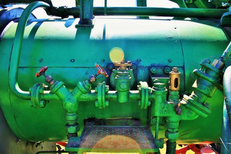 Keywords: steam engine engine steam part green pipes gauges mobile power
