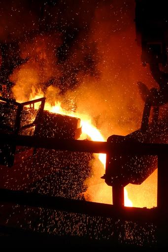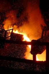 Keywords: steel mill worker foundry metal molten hot industry industrial heat manufacturing furnace production cast plant factory melting red hot spark fire