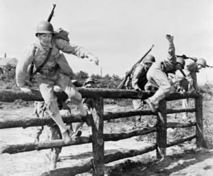 | Keywords: Steeplechase2.jpg Original caption from American army Camp Edwards Massachusetts In perfect steeplechase form these soldiers of the anti-aircraft training center fling themselves over the five-foot rail fence Par for the course is three and a half minutes Traduction de la légende originale rédigée par l'armée américaine « Camp Edwards Massachusetts Dans un style steeplechase parfait ces soldats du centre d'entrainement antiaérien franchissent la barrière de cinq pieds NdT 1 5 m environ de haut le temps exigé pour le parcours est de trois minutes et demi » Library of Congresshttp //hdl loc gov/loc pnp/fsa 8e00113 ca 1942 U S Army Signal Corps Partially restored version of File Steeplechase jpg Rotated and cropped Dust scratches dirt and fibers removed Masked brightness and contrast adjustments at far right and left Shadow/highlight tool applied See also File Steeplechase1 tif partial restoration and File Steeplechase2 tif full version uncompressed PD-USGov Assessments c 2009 1 1 Camp Edwards Obstacle courses Military training in the United States Featured pictures of Massachusetts Featured pictures from the Library of Congress |