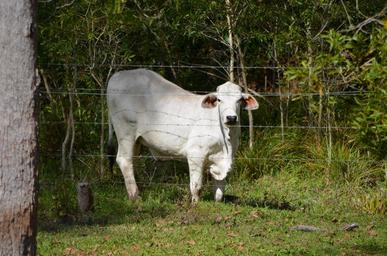 Keywords: steer cattle cow rural steers meat beef white fence farm agriculture outside property stare look
