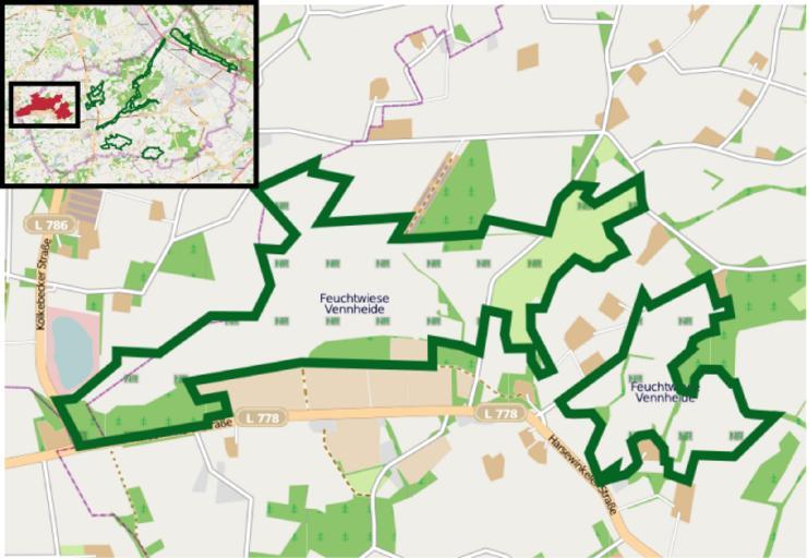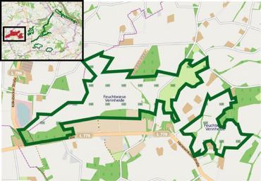 | Keywords: Steinhagen - NSG Feuchtwiese Vennheide - Map.png Steinhagen North Rhine-Westphalia - Nature reserve Feuchtwiese Vennheide - overview map<br/>Number and borders of nature reserves are subject to frequent change In order to facilitate reproduction of this map from openstreetmap the following data is stored here <br/> export boundaries north 52 01; west 8 286; south 51 99; east 8 333; mapnik svg scale 1 20 000<br/> nature reserve boundary stroke weight 10 0; <br/>nature reserve stroke color R 5 G 102 B 36; <br/>municipality border stroke weight as found Steinhagen Westfalen - Naturschutzgebiet Feuchtwiese Vennheide - à bersichtskarte Steinhagen - Réserve naturelle Feuchtwiese Vennheide - vue d'ensemble Own 2011-04-09 Hagar66 Licensed under the GFDL by author <gallery> image Steinhagen Westfalen - NSG Feuchtwiese Vennheide - Map svg </gallery> 51 998983 8 314386 region DE Cc-zero Maps of Steinhagen Westfalen Feuchtwiese Vennheide |