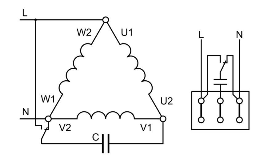 Keywords: Steinmetzschema-Richtungsumkehr.svg de de Steinmetzschaltung own Biezl Inkscape SVG electric motors