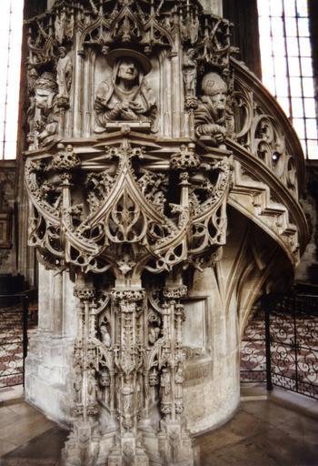 Keywords: Stephansdom pulpit.jpg Pulpit of Stephansdom Vienna Own 1996-09 Dave Pape PD-user Davepape Pulpit in St Stephen's Cathedral Vienna