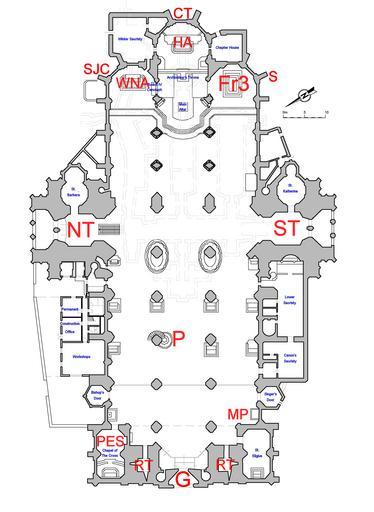 | Keywords: StephansdomAnnotated.png Floor plan of St Stephans' Cathedral in Vienna with significant features marked 2005-12-26 own assumed StanZegel Legend CT Christ with a Toothache sculpture; Fr3 Tomb of Emperor Frederick III; G Giant Door HA High Altar; MP Maria Pötsch icon; NT North Tower; P Pulpit; PES Prince Eugene of Savoy burial chapel; RT Roman Towers; S Sundial; SJC San Jphn Capistrano pulpit; ST South Tower; WNA Wiener Neustädt Altar; derivative works StephansdomAnnotated-es png Plans of St Stephen's Cathedral Vienna |