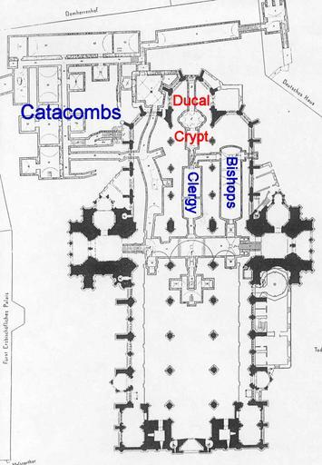 Keywords: StephansdomKatacombsLabeledPlan.png Locations of subterranean chambers of the Stephansdom in Vienna 2005-12-11 own assumed StanZegel derivative works StephansdomKatacombsLabeledPlan-es jpg Plans of St Stephen's Cathedral Vienna