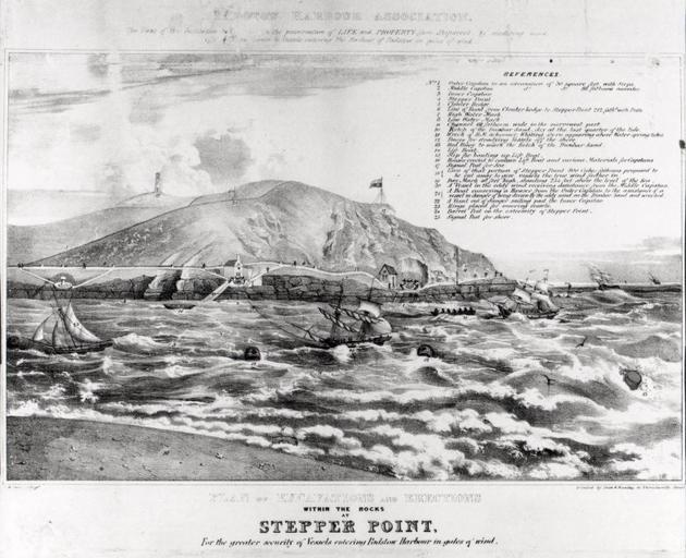 Keywords: Stepper Point Lithograph.jpg en A lithograph of by the Padstow Harbour Association showing the location of the HMS Whiting wreck 2012-06-07 http //www promare co uk/whiting/WhitingPlanning html Padstow Harbour Association / ProMare / Nautical Archaeology Society Title text Padstow Harbour Association The views of the institution are to ensure the preservation of Property from shipwreck by rendering more offers of assistance to vessels entering the Harbour of Padstow in gales of wind References text Outer Capstan in an excavation of 30 squ ft with steps Middle Capstan 88 fathoms Inner Capstan Stepper Point Clouter Hedge Line of road from Clouter Hedge to Stepper Point 212 fathoms with posts High Water Mark Low Water Mark Channel 60 fathoms wide in narrowest part Ketch of Dunbar Sand dry at the last quarter of the tide Wreck of H M Schooner Whiting stern appearing at Low Water Spring Tides Bouys for steadying vessels off shore Red Bouy marking Ketch of Dunbar sand Life Boat Slip for hauling up lifeboat Houses erected to contain life boat and various materials for Capstans Signal Post for sea Line of that portion of Stepper Point 800cu fathoms proposed to be cut away to give vessels true wind further in DayMark 50 ft high standing 254 feet about the level of the sea A vessel in the eddy wind receiving assistance from the Middle Capstan A boat conveying a hawser from the outer capstan to the assistance of a vessel in danger of being drive onto the Dunbar sand and being wrecked A vessel out of danger sailing past the inner capstan Rings placed for mooring vessels Barrel post on the extremity of Stepper Point Signal post for shore Bottom text Plan of excavations and erections within the rocks at Stepper point for greater security of vessels entering Padstow in gales of wind PD-old-70-1923 Uploaded with UploadWizard Doom Bar Stepper Point |