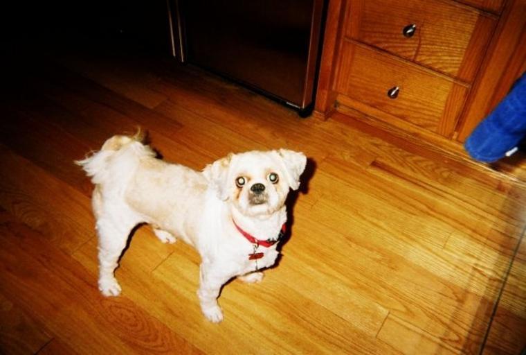 Keywords: STERRANCECUTESTPUPPYEVAR.jpg en A CUTE PUPPO own Amc07g HE IS THE CUTEST PUPPO Lhasa Apso hybrids Dog tags Animals on wooden floor Dogs looking up Eyeshine dogs Low quality images of dogs