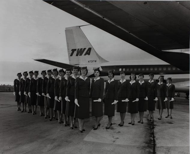 Keywords: women of flight photo womenofflightphoto stewardess in front of plane stewardessinfrontofplane n731tw boeing 707 boeing707 b707 707 twa boeing boeing 707-131 boeing707131 707-131 707131 c/n 17658 cn17658 17658 f-buzj fbuzj 9q-cbd 9qcbd 9q-ckp 9qckp boeing 707-131c boeing707131c 707-131c 707131c air fret airfret lukim air service lukimairservice stewardess stewardesses c/n 17658/18 cn1765818 17658/18 1765818 trans world airlines transworldairlines blackandwhite black and white Title: Stewardess in front of plane Catalog #: WOF_00109 Item Location: Women of Flight Box 3 Collection: Women of Flight Special Collection Tags: Women of Flight Photo, Stewardess in front of plane Repository: San Diego Air and Space Museum Archive Title: Stewardess in front of plane Catalog #: WOF_00109 Item Location: Women of Flight Box 3 Collection: Women of Flight Special Collection Tags: Women of Flight Photo, Stewardess in front of plane Repository: San Diego Air and Space Museum Archive