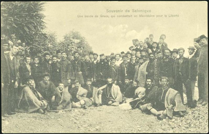 | Keywords: Stilianos Klidis Ioannis Doxoiannis 1908.jpg Пос ещане на солунската га а на освободените от Битолския затво 120 г ъцки анда ти с ед които Стилианос Клидис и Йоанис Доксоянис седнал шести от ляво на дясно с гъста б ада Ottoman postcard http //www imma edu gr/imma/dbs/Artifacts/index html start 2164 show 1 Author 1908-07-27 Greek Struggle for Macedonia PD-Ottoman | ||||