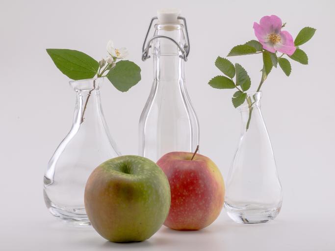 Keywords: still life bottles flowers deco apple