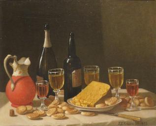| Keywords: 'Still Life with Bottles, Wine, and Cheese' by John F. Francis, 1857, High Museum.JPG Still Life with Bottles Wine and Cheese by John F Francis 1857 oil on canvas High Museum of Art own 1857 John F Francis American still-life paintings in the High Museum of Art Francis John F Francis Still life paintings PD-old-100 |