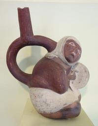 | Keywords: Stirrup spout vessel, Muchik people, Chicama Valley, Peru, c. 200-750 AD, ceramic with red and white slip glaze - Fitchburg Art Museum - DSC08969.JPG  en Exhibit in the Fitchburg Art Museum Fitchburg Massachusetts USA This artwork is old enough so that it is in the public domain Photography was permitted in the museum without restriction 2013-06-14 15 57 25 own Daderot cc-zero Uploaded with UploadWizard Pre-Columbian art in the Fitchburg Art Museum Pre-Columbian art of Peru Moche pottery |