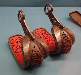 Keywords: Stirrups, Edo period, 18th century, wave design in inlay - Tokyo National Museum - DSC05946.JPG en Exhibit in the Tokyo National Museum Tokyo Japan This artwork is old enough so that it is in the public domain 2013-09-03 00 14 48 own Daderot cc-zero Japanese armour at the Tokyo National Museum Uploaded with UploadWizard Stirrups of Japan |