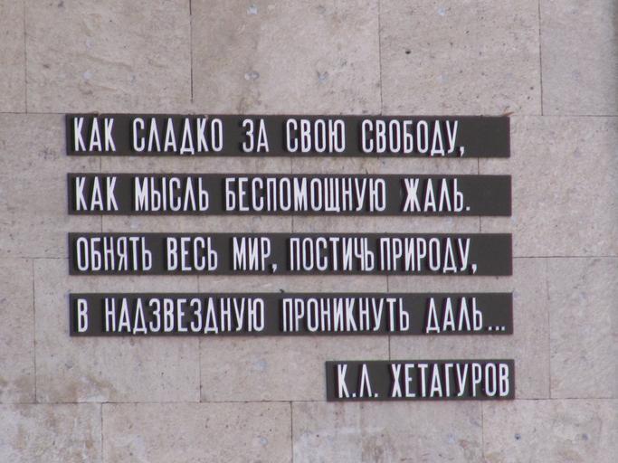 Keywords: Stixkosty.jpg ru Стихотво ение Косты Хетагу ова п и входе в цент альный па к имени Косты хетагу ова Владикавказ Севе ная Осетия 2011-10-11 own Rartat cc-zero Uploaded with UploadWizard Vladikavkaz