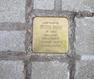 Keywords: Stolperstein für Georg Führ, Friedrich-Wilhelm-Straße 47.jpg 50 8683579 8 0306470 de Stolperstein für Georg Führ Friedrich-Wilhelm-Straße 47 57074 Siegen Nordrhein-Westfalen Deutschland Content Hier wohnte Georg Führ Jg 1880 verhaftet 'Hochverrat' ermordet 1943 in Sachsenhausen Openstreetmap http //www openstreetmap org/browse/node/1663095775 en A Stolperstein literally stumbling block “ a small cobblestone-sized memorial for a victim of Nazism for Georg Führ at Friedrich-Wilhelm-Straße 47 57074 Siegen Nordrhein-Westfalia Germany Content here lived Georg Führ born 1880 arrested 'high treason' murdered 1943 in Sachsenhausen Openstreetmap http //www openstreetmap org/browse/node/1663095775 2012-03-06 own Goeggimuss cc-zero Stolpersteine in Siegen Stolpersteine for those charged with treason |