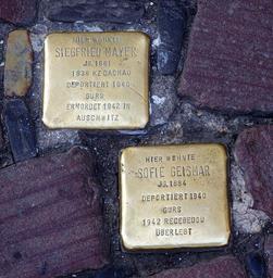 Keywords: Stolpersteine (Freiburg im Breisgau) 5267.jpg Die Stolpersteine für Siegfried Mayer und Sofie Geismar beim Einhang zur Alten Burse in Freiburg own 2011-03-12 11 21 16 joergens mi User Joergens mi/licence 47 9957275800 7 84982532004 PD-old Jömi 201103 Stolpersteine in Freiburg Bursengang Freiburg |