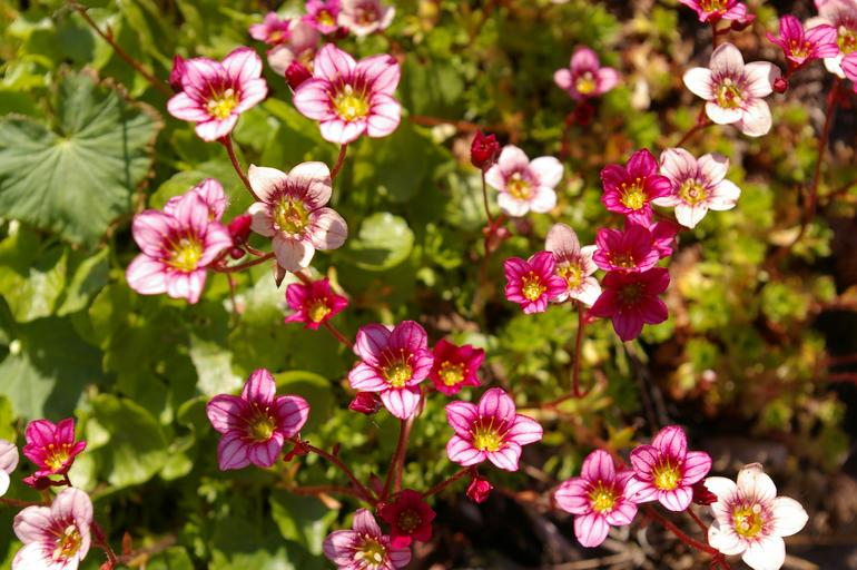 Keywords: stone bed garden nature plant stone bedding plant flower bed bed filigree flora flowers carpet of flowers close spring pink background colorful bloom color beauty beautiful romantic decoration greeting card background image