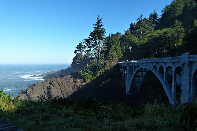 Keywords: stone bridge building shoreline coast rocks oregon usa nature scenery pacific