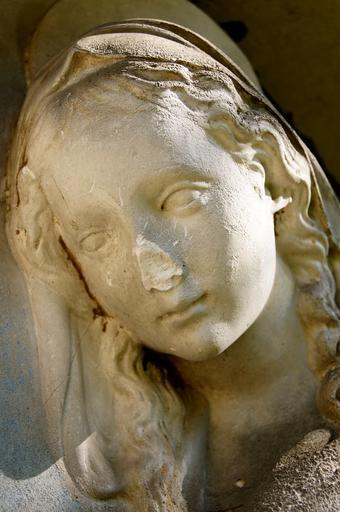 Keywords: stone face eyes mouth nose canceled damaged sculpture cemetery mourning old historically grave sepulchre art