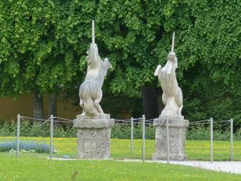 Keywords: stone figures figures unicorns horses steeds hellbrunn salzburg austria