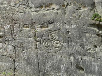 MAKE A MEME View Large Image stone rock steinzeichnung relief characters ornament pattern triskelion importance triskel symbol image radialsymmetrisch arcs open spiral spirals new stone age celts celtic mythology mythology mystical sand stone petroglyph felsbild ...