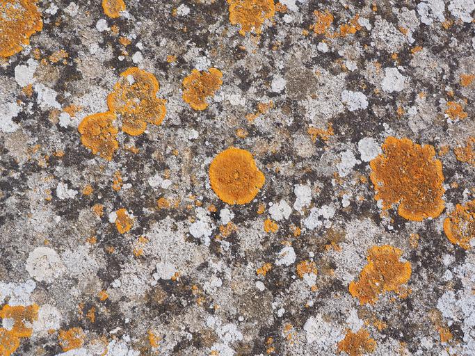 Keywords: stone weave orange ordinary gelbflechte xanthoria parietina leaf shaped lichen broad lobed leaf braid yellow ocher crust lichen lichen growth grey parellflechte ochrolechia parella cake braid tephromela atra