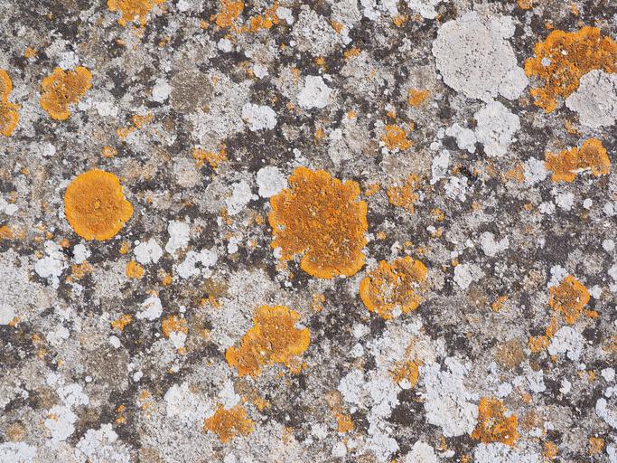 Keywords: stone weave orange ordinary gelbflechte xanthoria parietina leaf shaped lichen broad lobed leaf braid yellow ocher crust lichen lichen growth grey parellflechte ochrolechia parella cake braid tephromela atra