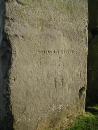 Keywords: Stonehenge megalith with ancient carvings April 2005.jpg Photo of the standing megalith stone 53 with the carvings of an axe and a dagger dated back to the bronze age Photo taken inside the Stonehenge circle at 6 45 PM GMT on April 23 2005 by Kristian H Resset Norway 2005-04-23 own assumed Resk 51 10 43 91 N 001 49 34 37 W Stonehenge individual stones |