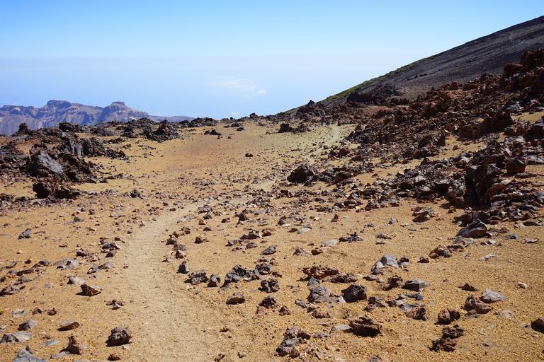 Keywords: stones rock rocks away path trace sand desert lunar landscape migratory path pumice stone basalt lava teide national park tenerife canary islands