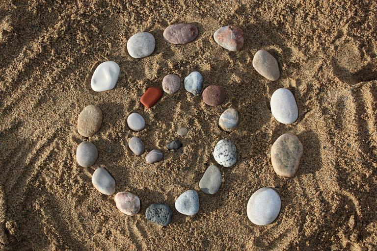Keywords: stones spiral signal sand beach art natural matirial
