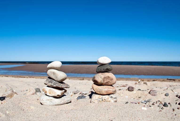 Keywords: stones stack water sea beach balance stone tower success luck force patience stacked tower colorful baltic sea meditation rest dune layered