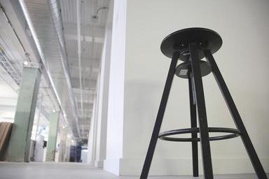 Keywords: stool seat tripod interior chair furniture modern contemporary steat black warehouse industrial pipes vents beams white