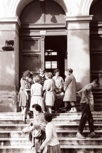 | Keywords: Stopnišče pred I. gimnazijo - začetek šole 1960.jpg Stopnišče pred I gimnazijo - začetek šole 272027 1960-09-05 creator Dragiša Modrinjak PD-Slovenia 1960 in Slovenia Historical black and white photographs of Maribor Maribor First Gymnasium School children of Slovenia Entrance stairs in Maribor Doors in Maribor Photographs by Dragiša Modrinjak |