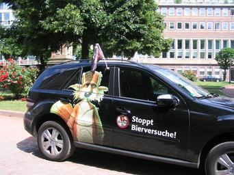 Keywords: Stoppt Bierversuche.jpg Stoppt Bierversuche einer der Slogans einer witzigen Werbekampagne der Altbier-Brauerei Füchschen in Düsseldorf Aufgenommen in der Orangeriestraße am Maxplatz Own 2010-06-25 Stöhrfall <span class signature-talk >talk</span> 19 17 25 June 2010 UTC Altbier Maxplatz Düsseldorf Foxes in art Beer advertisements on automobiles Animal testing Breweries in Düsseldorf 2010 in Düsseldorf Mercedes-Benz W164 2008 |