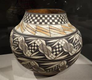 | Keywords: Storage jar (olla), New Mexico, Acoma Pueblo, c. 1890-1910, earthenware and pigment - De Young Museum - DSC00300.JPG en Exhibit in the De Young Museum San Francisco California USA This artwork is in the public domain because the artist died more than 70 years ago Photography was permitted in the museum without restriction 2013-11-05 14 50 15 own Daderot other versions cc-zero Uploaded with UploadWizard Pueblo pottery in the De Young Museum Acoma Pueblo pottery Tecomate ceramics | ||||