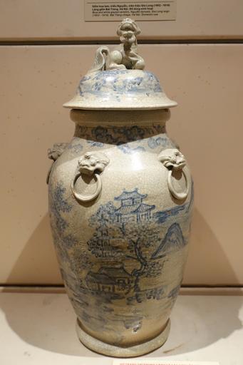 Keywords: Storage jar with landscape and sacred animals, Bat Trang, Hanoi, Nguyen dynasty, Gia Long reign (1802-1819 AD), blue and white glazed ceramic - National Museum of Vietnamese History - Hanoi, Vietnam - DSC05640.JPG en Exhibit in the National Museum of Vietnamese History Hanoi Vietnam Photography was permitted in the museum without restriction This artwork is old enough so that it is in the public domain 2014-08-06 03 34 49 own Daderot other versions cc-zero Nguyễn dynasty ceramics in the National Museum of Vietnamese History Uploaded with UploadWizard |