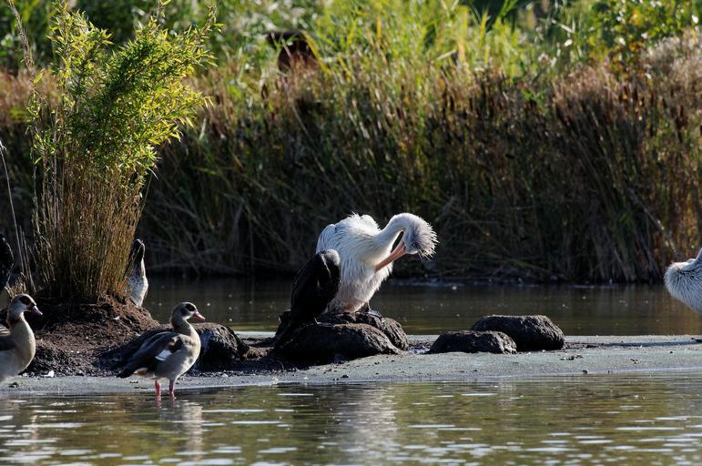 Keywords: stork preening waters reed ducks enclosure animal zoo