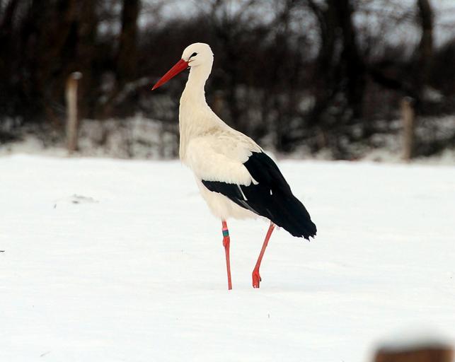 Keywords: storks white stork bird animals bill rattle stork ciconia ciconia nature pride animal portrait black and white snow