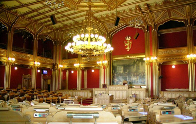 Keywords: Stortingssalen.jpg Norwegian parliament Stortinget Oslo Own 2007-01-24 User Mahlum Stortingssalen Stortingsbygningen Eidsvold 1814 painting