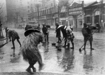 Keywords: 3024-11 302411 japan 1930 noodweer heavy weather heavyweather storm wolkbreuk vegen sweep tokyo street straat rain weather people blackandwhite monochrome outdoor black and white Spaarnestad Photo, SFA001006712 Mensen vegen de straat tijdens noodweer. Tokyo, Japan. Circa 1930. Collectie SPAARNESTAD PHOTO/Het Leven People sweeping the street in heavy weather. Tokyo, Japan. Around 1930. Voor meer informatie en voor meer foto’s uit de collectie van Spaarnestad Photo, bezoek onze Beeldbank: www.spaarnestadphoto.nl/ U kunt ons helpen onze kennis van de fotocollecties te verrijken door tags en commentaren toe te voegen. Herkent u mensen of locaties of heeft u een bijzonder verhaal te vertellen bij één van de foto’s, laat dan een reactie achter (als u ingelogd bent bij Flickr) of stuur een mailtje naar: hhamelink@spaarnestadphoto.nl You can help us gain more knowledge on the content of our collection by simply adding a comment with information. If you do not wish to log in, you can write an e-mail to: hhamelink@spaarnestadphoto.nl Spaarnestad Photo, SFA001006712 Mensen vegen de straat tijdens noodweer. Tokyo, Japan. Circa 1930. Collectie SPAARNESTAD PHOTO/Het Leven People sweeping the street in heavy weather. Tokyo, Japan. Around 1930. Voor meer informatie en voor meer foto’s uit de collectie van Spaarnestad Photo, bezoek onze Beeldbank: www.spaarnestadphoto.nl/ U kunt ons helpen onze kennis van de fotocollecties te verrijken door tags en commentaren toe te voegen. Herkent u mensen of locaties of heeft u een bijzonder verhaal te vertellen bij één van de foto’s, laat dan een reactie achter (als u ingelogd bent bij Flickr) of stuur een mailtje naar: hhamelink@spaarnestadphoto.nl You can help us gain more knowledge on the content of our collection by simply adding a comment with information. If you do not wish to log in, you can write an e-mail to: hhamelink@spaarnestadphoto.nl |