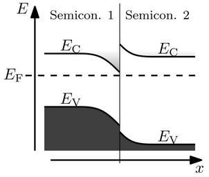 Keywords: Straddling gap heterojunction band diagram.svg en Semiconductor heterojunction band bending 2013-06-09 17 04 34 own Nanite Source code Made using Ipe Source code below also licensed as public domain <source lang xml > < xml version 1 0 > < DOCTYPE ipe SYSTEM ipe dtd > <ipe version 70005 creator Ipe 7 1 2 > <info created D 20130511174826 modified D 20130609170341 /> <ipestyle name cust > <pen name heavier value 1 /> <arrowsize name large value 10 /> <arrowsize name small value 5 /> <arrowsize name tiny value 3 /> <color name gray value 0 5 /> <color name darkgray value 0 25 /> <color name lightgray value 0 75 /> <dashstyle name dashed value 4 0 /> <dashstyle name dotted value 1 0 /> <textsize name large value \large /> <textsize name small value \small /> <textsize name tiny value \tiny /> <textsize name Large value \Large /> <textsize name LARGE value \LARGE /> <textsize name huge value \huge /> <textsize name Huge value \Huge /> <textsize name footnote value \footnotesize /> <textstyle name center begin \begin center end \end center /> <textstyle name itemize begin \begin itemize end \end itemize /> <textstyle name item begin \begin itemize \item end \end itemize /> <gridsize name 4 pts value 4 /> <gridsize name 8 pts ~3 mm value 8 /> <gridsize name 16 pts ~6 mm value 16 /> <gridsize name 32 pts ~12 mm value 32 /> <gridsize name 10 pts ~3 5 mm value 10 /> <gridsize name 20 pts ~7 mm value 20 /> <gridsize name 14 pts ~5 mm value 14 /> <gridsize name 28 pts ~10 mm value 28 /> <gridsize name 56 pts ~20 mm value 56 /> <gridsize name 2 pts value 2 /> <anglesize name 90 deg value 90 /> <anglesize name 60 deg value 60 /> <anglesize name 45 deg value 45 /> <anglesize name 30 deg value 30 /> <anglesize name 22 5 deg value 22 5 /> <layout paper 132 112 origin 0 0 frame 132 112 /> <gradient name fermi type axial coords 0 48 0 80 extend yes > <stop offset 0 color 0 25 /> <stop offset 1 color 1 /> </gradient> <tiling name falling angle -60 step 4 width 1 /> <tiling name rising angle 30 step 4 width 1 /> </ipestyle> <page> <layer name alpha /> <layer name BBOX /> <view layers alpha active alpha /> <path layer alpha fill white gradient fermi > 76 108 m 28 108 l 28 78 l 48 78 l 64 78 76 66 s </path> <path fill white gradient fermi > 76 16 m 28 16 l 28 44 l 48 44 l 64 44 76 32 s </path> <path fill white gradient fermi > 124 16 m 76 16 l 76 28 l 84 20 100 20 s 124 20 l </path> <path fill white gradient fermi > 124 108 m 76 108 l 76 84 l 84 76 100 76 s 124 76 l </path> <path matrix 1 0 0 1 0 -12 stroke black dash dashed pen heavier > 16 76 m 128 76 l </path> <text matrix 1 0 0 1 -150 -674 464 transformations translations pos 152 736 stroke black type label width 12 993 height 6 812 depth 1 49 valign baseline > E_ \rm F </text> <path layer BBOX stroke black > 0 0 m 0 112 l 132 112 l 132 0 l h </path> <path layer alpha matrix 1 0 0 1 2 -8 stroke black pen heavier rarrow normal/normal > 20 116 m 20 24 l </path> <text matrix 1 0 0 1 -134 -632 464 transformations translations pos 152 736 stroke black type label width 7 929 height 6 808 depth 0 halign right valign baseline > E </text> <path matrix 1 0 0 1 0 -2 stroke black pen heavier arrow normal/normal > 32 12 m 128 12 l </path> <text matrix 1 0 0 1 44 -12 transformations translations pos 80 14 stroke black type label width 5 694 height 4 289 depth 0 valign baseline > x </text> <path matrix 1 0 0 1 8 0 stroke black > 68 110 m 68 8 l </path> <text matrix 1 0 0 1 -62 -12 transformations translations pos 162 90 stroke black type label width 13 54 height 6 812 depth 1 49 valign baseline > E_ \rm C </text> <text matrix 1 0 0 1 -62 -68 transformations translations pos 162 90 stroke black type label width 13 84 height 6 812 depth 1 49 valign baseline > E_ \rm V </text> <text matrix 1 0 0 1 72 -10 transformations translations pos 28 110 stroke black type label width 40 93 height 5 446 depth 0 halign center valign baseline size footnote >Semicon 2</text> <path stroke black pen heavier > 76 84 m 84 76 100 76 s 124 76 l </path> <path stroke black pen heavier > 76 28 m 84 20 100 20 s 124 20 l </path> <path stroke black pen heavier > 28 44 m 48 44 l 64 44 76 32 s </path> <path stroke black pen heavier > 28 78 m 48 78 l 64 78 76 66 s </path> <text matrix 1 0 0 1 24 -10 transformations translations pos 28 110 stroke black type label width 40 93 height 5 446 depth 0 halign center valign baseline size footnote >Semicon 1</text> <text matrix 1 0 0 1 -124 -10 transformations translations pos 162 90 stroke black type label width 13 54 height 6 812 depth 1 49 valign baseline > E_ \rm C </text> <text matrix 1 0 0 1 -124 -44 transformations translations pos 162 90 stroke black type label width 13 84 height 6 812 depth 1 49 valign baseline > E_ \rm V </text> </page> </ipe> </source> cc-zero Uploaded with UploadWizard Heterojunction band diagrams |
