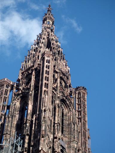 Keywords: strasbourg münster church cathedral sky blue steeple art