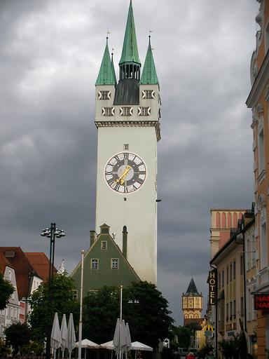 Keywords: straubing germany clock bell tower people chimes tower time clouds cloudy
