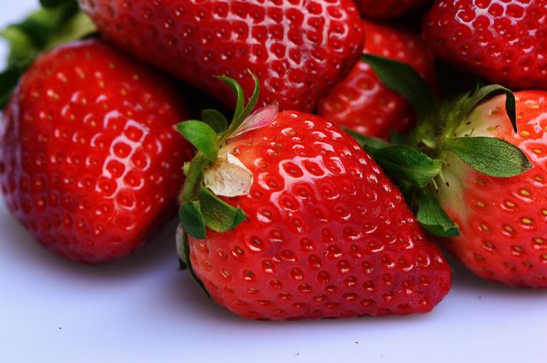 Keywords: strawberries fruit close fruits red sweet food eat delicious