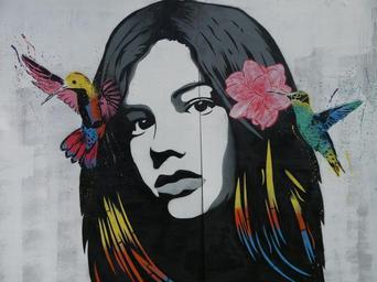 Keywords: street art grafitti backdrop colorful color artistic cool modern graffitti art street spray girl hummingbird flower