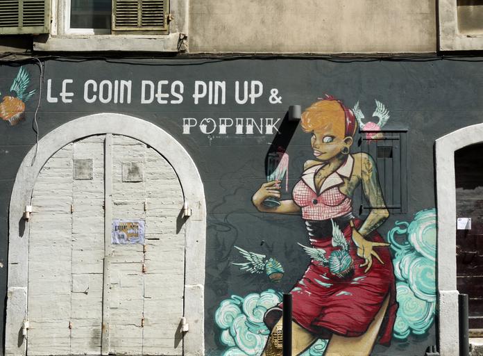Keywords: street art pin up tattoo wall hauswand art facade fun sexy girl wall painting creative joy door pin up girl marseilles old town graffiti