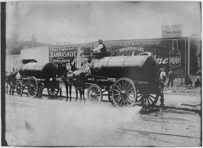 | Keywords: Street cleaning equipment. St. Louis - NARA - 283609.jpg Scope and content Photograph of mule drawn street cleaning equipment and crews on both residential and business streets Four pictures show brick streets in need of cleaning In the background of General notes 283609 Local identifier U S District Court for the Eastern St Louis Division of the Eastern District of Missouri 02/28/1887 - NARA's Central Plains Region Kansas City NREA 400 West Pershing Road Kansas City MO 64108 other date circa 1900 1910 Record group Record Group 21 Records of District Courts of the United States 1685 - 2004 Record group ARC 350 Equity and Law Case Files compiled 1857 - 1938 Series ARC 562790 File unit St Louis Street Flushing Company v American Street Flushing Company 1900 - 1910 File unit ARC 283607 Variant control numbers NAIL Control Number NRE-21-EMOSTLE L-E L9028-STLCC32 Other versions <gallery> File Street_cleaning_equipment _St _Louis_-_NARA_-_283609 tif tif File Street_cleaning_equipment _St _Louis_-_NARA_-_283609 jpg jpg </gallery> NARA-cooperation PD-USGov Horse-drawn wagons in the United States Street cleaning in the United States |