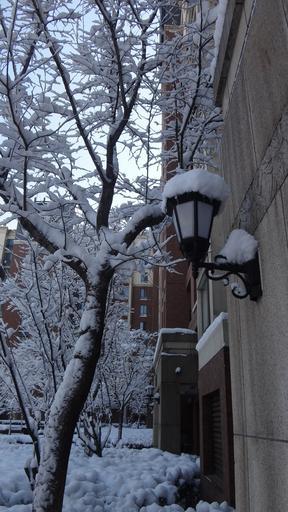 Keywords: street lamp community snow winter street construction