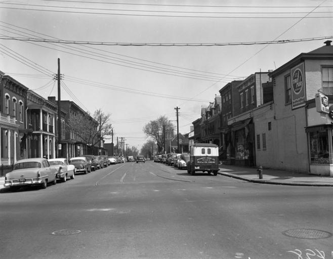 | Keywords: library of virginia libraryofvirginia richmond va richmondva african-american africanamerican adolph b. rice studio adolphbricestudio streetscapes automobiles dairy trucks dairytrucks milk trucks milktrucks architecture trolley car tracks trolleycartracks street car tracks streetcartracks jackson ward jacksonward harlem of the south harlemofthesouth 1956 pet ice cream peticecream signs tru- ade truade richmond dairy company richmonddairycompany national register of historic places nationalregisterofhistoricplaces national historic landmark districts nationalhistoriclandmarkdistricts blackandwhite monochrome road outdoor building black and white Title: Street scene, Jackson Ward Creator: Adolph B. Rice Studio Date: April 13, 1956 Identifier: Rice Collection 1002B Format: 1 negative, safety film, 4 x 5 in. Rights Info: No known restrictions on publication. Repository: Library of Virginia, Prints and Photographs, 800 E. Broad St., Richmond, VA, 23219, USA, digitool1.lva.lib.va.us:8881/R Title: Street scene, Jackson Ward Creator: Adolph B. Rice Studio Date: April 13, 1956 Identifier: Rice Collection 1002B Format: 1 negative, safety film, 4 x 5 in. Rights Info: No known restrictions on publication. Repository: Library of Virginia, Prints and Photographs, 800 E. Broad St., Richmond, VA, 23219, USA, digitool1.lva.lib.va.us:8881/R |