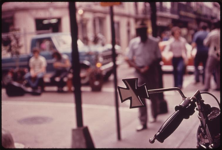 | Keywords: STREET SCENE - NARA - 546169.tif Scope and content New Orleans General notes View is from doorway of the A P grocery store at the downtown lake corner of Royal and St Peter Streets French Quarter looking across towards the Pedesclaux-Lemonnier House diagonally across the intersection Only the foreground is in sharp focus showing portion of a motorcycle including a cross shaped mirror parked on the sidewalk Beyond in blurred focus can be seen pedestrians auto traffic heading back on St Peter Street Two people are seated in street at left; one with guitar case; likely they are street musicians 546169 Local identifier 412-DA-3682 Environmental Protection Agency 12/02/1970 - NARA-Author St Gil Marc 1924-1992 Photographer 8464473 <br /> New Orleans Orleans Louisiana United States North and Central America inhabited place 4202431 29 95 -90 067 <br /> Still Picture Records Section Special Media Archives Services Division NWCS-S National Archives at College Park 8601 Adelphi Road College Park MD 20740-6001 1972 05 Record group Record Group 412 Records of the Environmental Protection Agency 1944 - 2006 Record group ARC 708 DOCUMERICA The Environmental Protection Agency's Program to Photographically Document Subjects of Environmental Concern compiled 1972 - 1977 Series ARC 542493 File unit File unit ARC Variant control numbers Agency-Assigned Identifier 062/22/003682<br /> NAIL Control Number NWDNS-412-DA-3682 yes Other versions <gallery> File STREET_SCENE_-_NARA_-_546169 tif tif File STREET_SCENE_-_NARA_-_546169 jpg jpg </gallery> File StGilRoyalStPeter1972 jpg NARA-cooperation PD-USGov 1972 in New Orleans Royal Street French Quarter DOCUMERICA NARA TIF images with categorized JPGs |